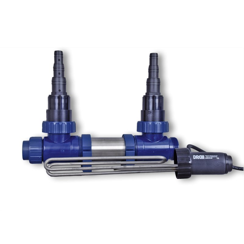 Die Aquaforte Durchflussheizer (1 kW / 2 kW) sind mit einem präzisen Thermostat (einstellbar von 0–40 °C) ausgestattet, der zuverlässig für eine konstante Wassertemperatur sorgt.