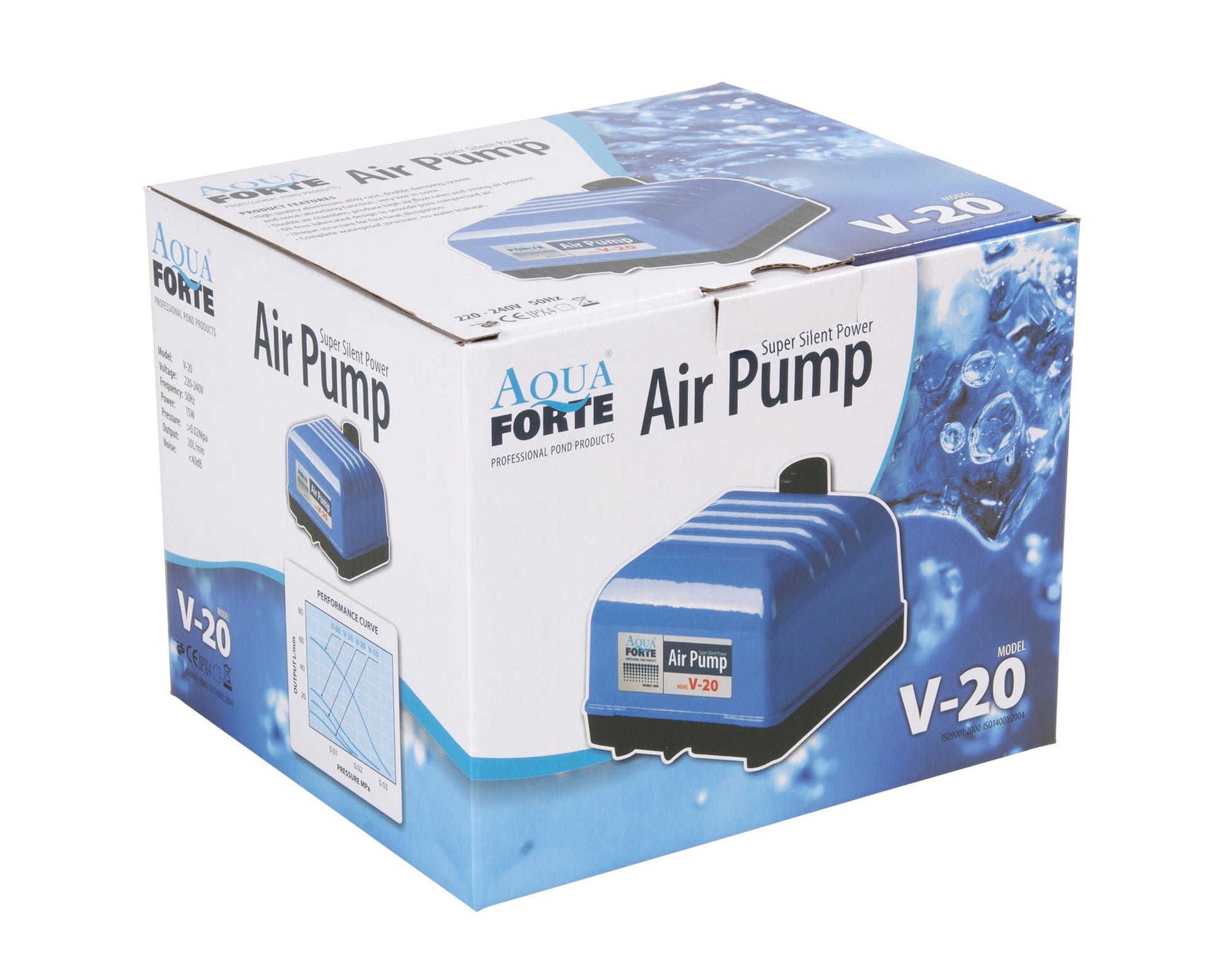 Die AquaForte V-Serie ist deine zuverlässige Lösung für eine effektive und gleichmäßige Sauerstoffversorgung. Diese Pumpen überzeugen durch ihre ruhige Arbeitsweise, lange Lebensdauer und ein äußerst attraktives Preis-Leistungs-Verhältnis. Mit ihrem kompakten Design und dem spritzwassergeschützten Aluminiumgehäuse sind sie bestens für den Outdoor- sowie Indoor-Einsatz geeignet.