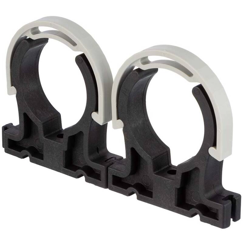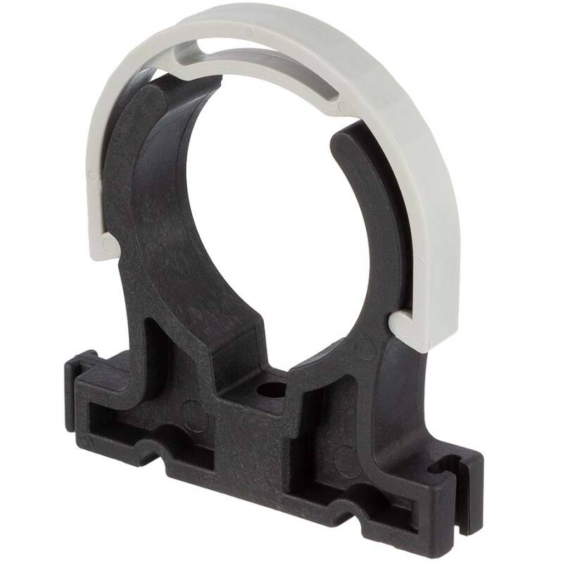 Die PP-Rohrhalter in den Größen Ø 75 mm und Ø 110 mm sorgen für eine sichere und langlebige Befestigung von großen Rohrleitungen.